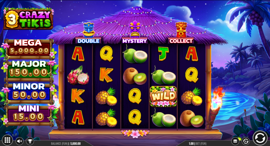 3 Crazy Tikis merges Maori culture with modern slot mechanics in a vibrant tropical setting. Iron Dog Studio’s September 2024 release features a 5×3 grid with 30 paylines and stakes from 0.20 to 50.00. The game introduces an innovative color-coded Tiki system where blue, purple, and red Tikis activate unique multiplier abilities during bonus rounds. The Hold & Win feature triggers with six coins, offering respins with dynamic multipliers up to 100x. Three scatter symbols award 8 free spins with doubled wild wins. With high volatility and RTP ranging from 91-95%, the slot targets experienced players seeking substantial wins up to 5000x. The Golden Tiki Mask adds strategic depth by transforming into any colored Tiki during features.