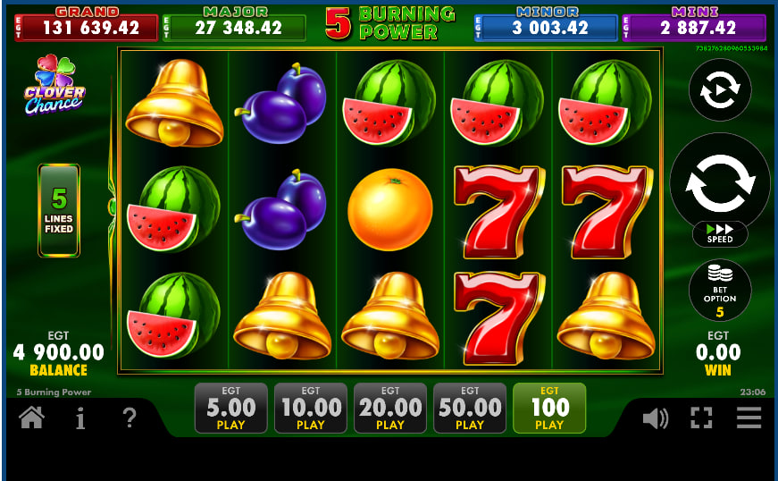 5 Burning Power by EGT Digital carves its niche by adhering to classic slot principles while integrating the significant allure of a multi-level progressive jackpot. It doesn't attempt to innovate with complex narratives or a profusion of nested bonus rounds. Instead, its strength lies in its refined simplicity, coupled with the potent Clover Chance Jackpot and the impactful expanding Wilds on the central reels. The dual Scatter system provides additional avenues for wins outside the payline structure, though their role is purely financial, lacking a trigger mechanism for more elaborate features.