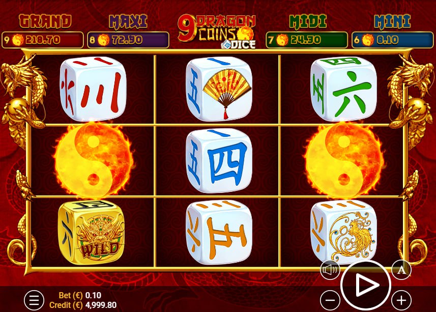 9 Dragon Coins Dice by Zeusplay offers a distinctive East Asian gaming atmosphere rooted in traditions of fortune and mythical creatures. Its visual style centers on intricate dragon imagery and symbols presented on stylized dice. The game utilizes a compact 3×3 grid for play. Wins in the base game are awarded for landing four or more matching symbols anywhere on this small layout. The central attraction is the Bonus Game, triggered by three or more Yin Yang scatter symbols. During this feature, triggering symbols become sticky and new Bonus symbols reset the respin count to three. Accumulated cash values and four fixed prizes (Mini, Midi, Maxi, Grand) are awarded based on the number of Bonus symbols collected. This slot carries a theoretical Return to Player rate of 95.1%.