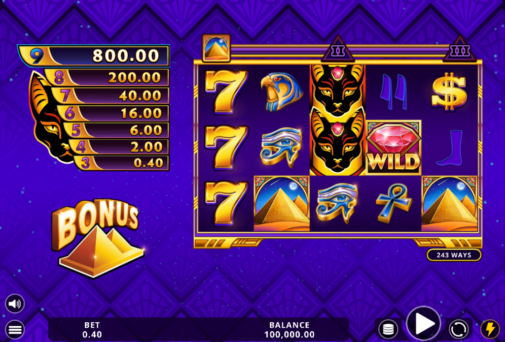 The slot centers around the sacred cats of Ancient Egypt, particularly drawing inspiration from Bastet, the Egyptian goddess of home, fertility, and protection. In Ancient Egyptian culture, cats were revered as divine creatures, and this slot captures that reverence through its carefully crafted symbolism and mechanics.