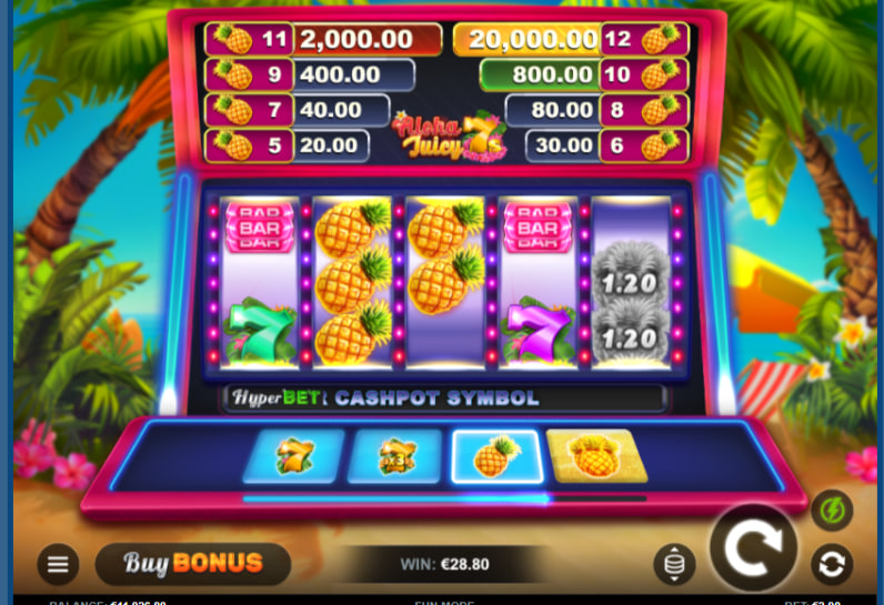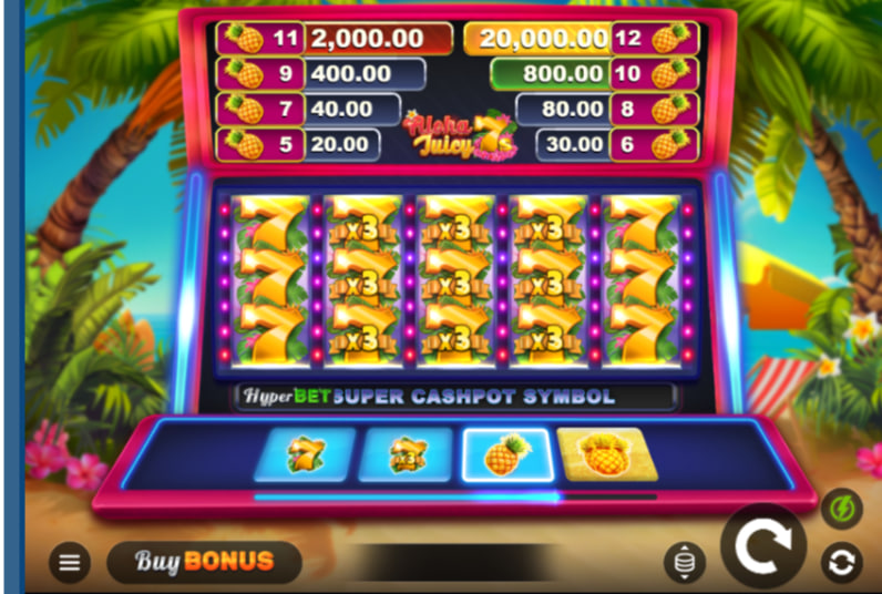 Aloha Juicy 7s operates on a 5-reel, 3-row grid, offering 10 fixed paylines that remunerate from left to right for adjacent symbol combinations. This is a fairly conventional foundation, but the game distinguishes itself almost immediately with the introduction of the HyperBet feature. This is not merely a cosmetic toggle; it is an integral system that allows players to directly influence the game's feature set and, by extension, its volatility and payout potential. The HyperBet presents four distinct levels, each escalating the stakes and the available in-game modifiers.
