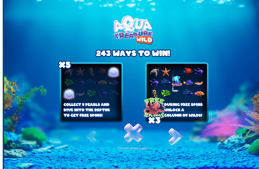 Aqua Treasure Wild by Consulabs is a video slot that uses a vibrant underwater theme as a setting for its distinct gameplay structure. The game presents a serene aquatic atmosphere through a polished, stylized art direction that brings its colorful marine life to life. Its action unfolds on a 5×3 grid operating with a 243 ways-to-win system, which awards wins for adjacent symbols rather than on fixed paylines. The core gameplay loop centers on a persistent collection mechanic where players must gather five pearl symbols over multiple spins to activate the primary feature. Triggering this bonus round initiates the Free Spins, during which a full column becomes a locked wild, drastically altering the winning potential. This design creates a medium-to-high volatility experience, concentrating the most significant outcomes within the bonus round. The combination of a long-term collection goal with a high-impact reel modifier provides a specific and engaging gameplay dynamic for analytical players.
