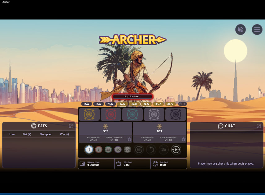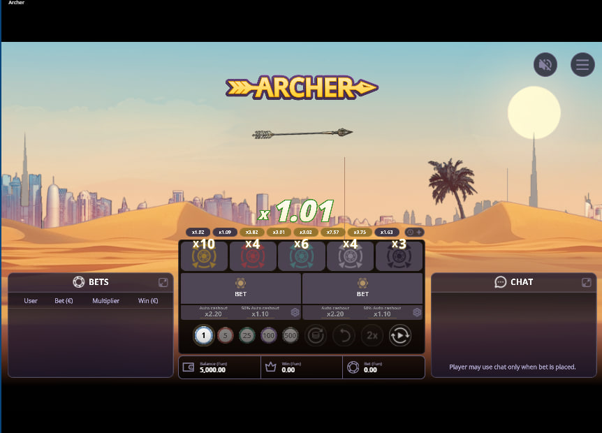 Like many titles in the crash genre, Archer incorporates a strong social element that is central to the experience. A persistent “BETS” panel is visible on the screen, displaying a live list of the usernames, bet amounts, and cashout multipliers of other active players. This is more than just a cosmetic feature; it creates a tangible sense of a shared, communal event. Observing the strategies of others—who is cashing out early, who is holding on for massive multipliers—can be both informative and entertaining, adding a layer of metagame to the proceedings.