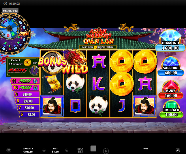 The Blazing Wheel is the ultimate prize in the “Asian Warriors Qian Lun” slot. Triggered by the collection of 12 or more Coin symbols during the Qian Lun Feature, this dynamic wheel presents players with the chance to win one or multiple of the game's four fixed jackpots: Diamond, Sapphire, Ruby, and Emerald. The value of these jackpots is displayed prominently on the right side of the screen, offering substantial rewards for fortunate players. The interplay between the Coin symbols, the locked reels, respins, and the ultimate prize of the Blazing Wheel creates a compelling loop that rewards persistence and strategic symbol collection. This layered approach to bonus triggering distinguishes it from simpler slot mechanics.