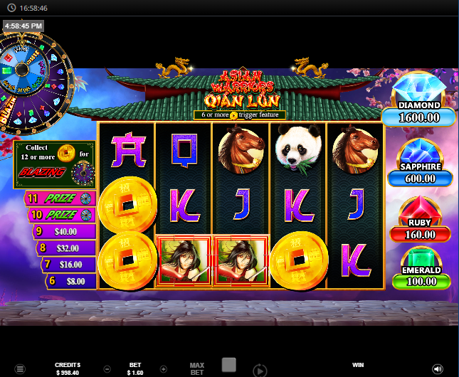 The standout mechanic in “Asian Warriors Qian Lun” is the Qian Lun Feature, intricately tied to the collection of Coin symbols. This feature activates when six or more Coin symbols land on the reels. Upon activation, these triggering coins remain locked in place, creating a foundation for potential future wins. The reels then respin, offering additional opportunities to land more Coin symbols. This “lock and respin” mechanism is a direct gateway to the game's most significant potential, as the accumulation of these coins directly influences the activation of the Blazing Wheel.