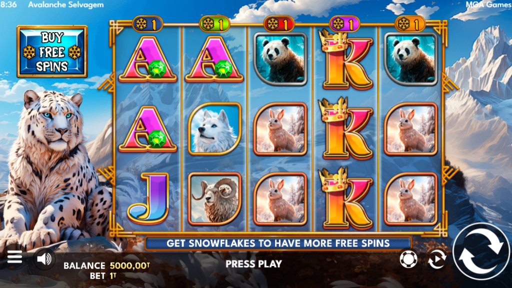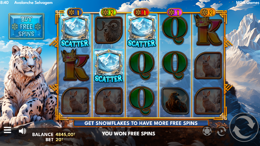A pristine world of snow-capped peaks and majestic wildlife awaits in Avalanche Selvagem, MGA Games' latest creation that brings a fresh perspective to wildlife-themed slots. This medium-volatility game stands out through its innovative snowflake accumulation system and strategic Free Spins mechanics.