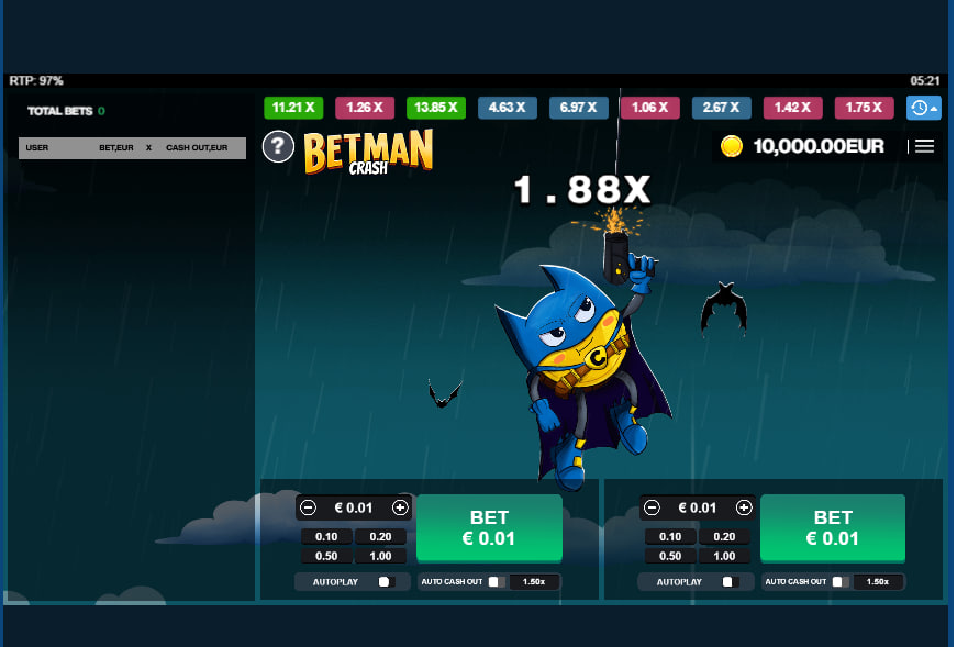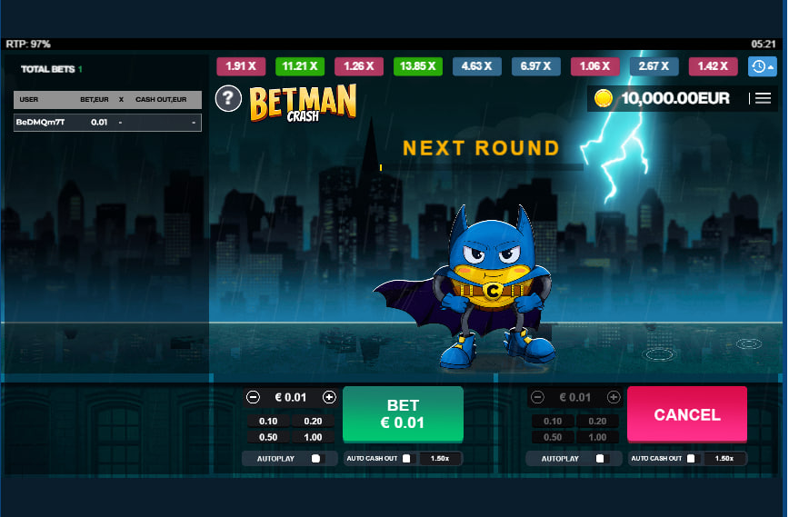 The central action in Betman Crash revolves around a single, perpetually increasing multiplier. At the start of each round, players have a brief window to place one or two independent wagers. Once the betting window closes, the game's hero, Betman, begins his ascent, and a multiplier value starts climbing from 1.00x. The multiplier increases at a variable pace, building suspense. The player's objective is to click the “Cash Out” button before the round abruptly ends, signified by Betman “flying away” at a randomly determined point. A successful cash-out multiplies the initial stake by the value displayed at the exact moment the button was pressed. If the round ends before the player cashes out, the entire stake for that bet is lost. This creates a tense dynamic, a constant balancing act between securing a small, consistent gain and holding out for a potentially much larger multiplier.