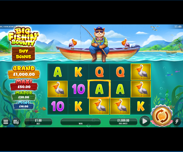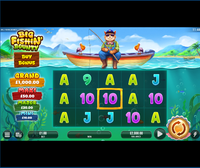 Dive into the sunny world of “Big Fishin’ Bounty,” a distinctive video slot by Atomic City featuring a charming feline angler. This 5-reel, 3-row game unfolds across 20 fixed paylines, presenting a refreshing fishing theme with a bright, cartoonish atmosphere. The core gameplay revolves around the unique Cash Collect mechanic, where a central Wild symbol gathers values from money and prize symbols on the reels. Enhance your opportunities with the Refish Feature, which can re-spin reels to land crucial symbols, especially potent during the Free Spins bonus round. The Free Spins feature awards 6 or 12 games with a sticky Wild, offering consistent potential for wins. With a solid RTP of 96.46% and a maximum win of 5000x your stake, “Big Fishin’ Bounty” provides a balanced and engaging reel experience.