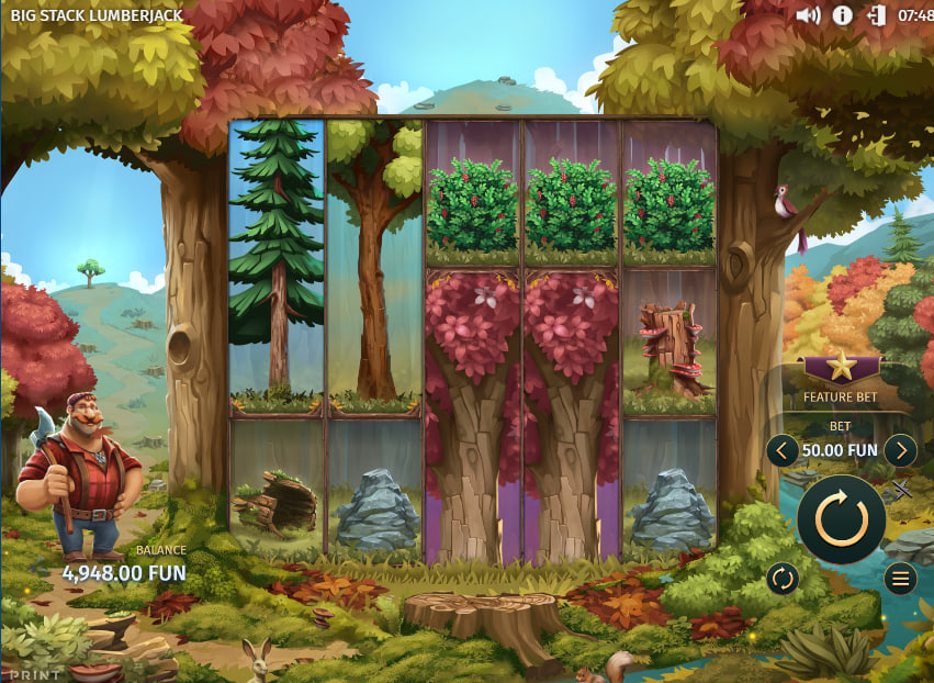 Big Stack Lumberjack, developed by Print Studios, offers a unique experience that diverges from the typical online slot formula. This game is set against a tranquil forest backdrop, complete with falling leaves, a friendly lumberjack, and the occasional woodland creature. But do not be fooled by the serene setting, this game packs a punch with its unusual mechanics and bonus features. The color palette is rich and earthy, a blend of autumnal hues that create a calming yet engaging atmosphere.