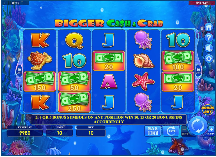 The central attraction of “Bigger Cash & Crab” is its Bonusspin feature, triggered by landing three, four, or five Bonus scatter symbols – represented by a crab clutching banknotes – anywhere on the reels. This initiates a sequence of 10, 15, or 20 complimentary spins, respectively. The Bonus scatter symbol also carries its own payout values, awarded independently of paylines.