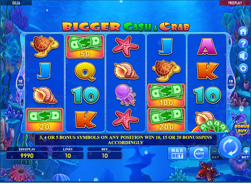 Amatic's “Bigger Cash & Crab” presents an aquatic-themed slot experience built on a 5-reel, 4-row grid with 10 fixed paylines. The visual execution adopts a bright, somewhat cartoonish aesthetic, depicting an underwater realm populated by common marine life and, more unusually, wads of currency. While the graphical fidelity may not rival cutting-edge releases, the design is functional and clearly delineates symbols and gameplay elements, which is paramount for player clarity. The overall ambiance is straightforward, focusing less on narrative immersion and more on the direct presentation of its core gaming loops.