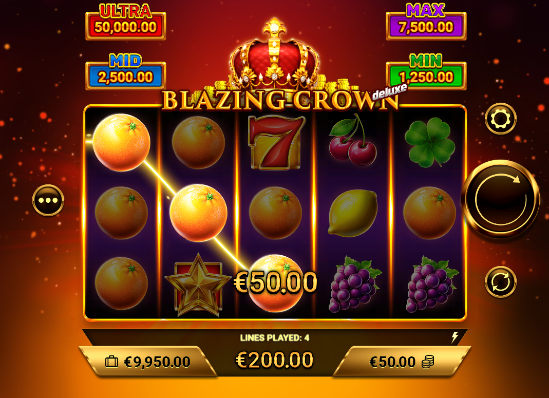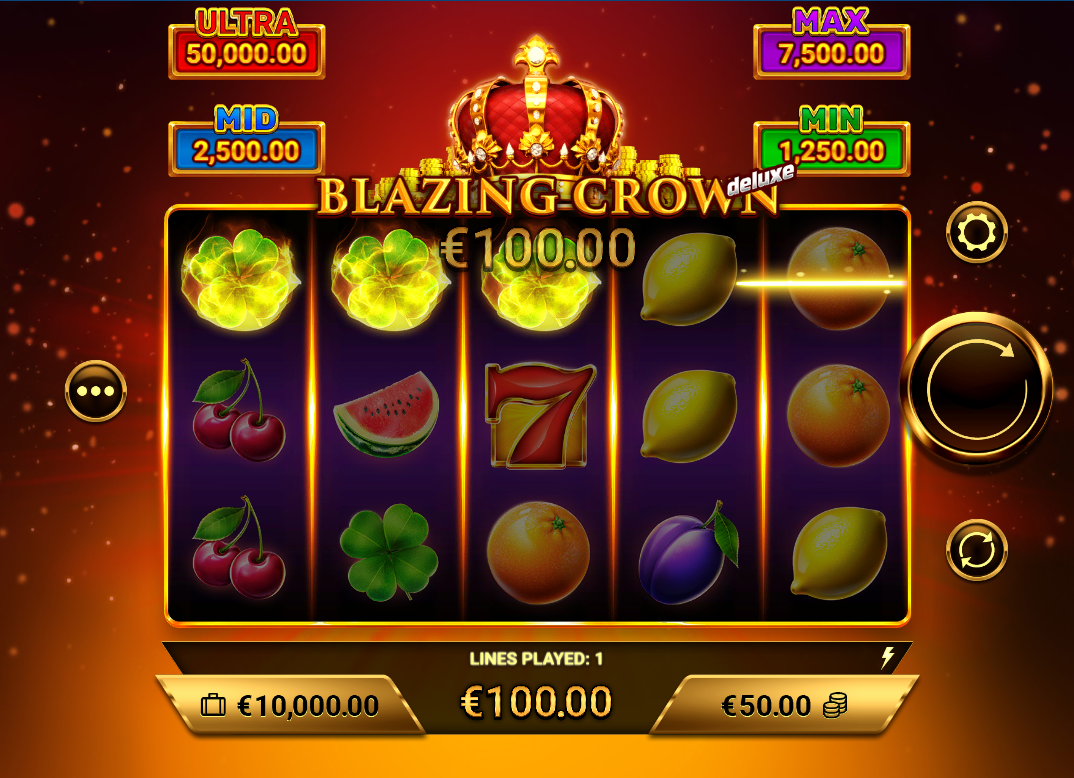 At its heart, Blazing Crown Deluxe operates on a 5×3 reel setup with 10 fixed paylines, offering a maximum multiplier of 1500x. The betting structure accommodates various player preferences, with the highest-paying regular symbol – the framed lucky seven – offering €50.00 for a five-of-a-kind combination. What sets this game apart is its balanced paytable design, where even lower-paying fruit symbols provide meaningful returns, maintaining engagement throughout extended playing sessions.