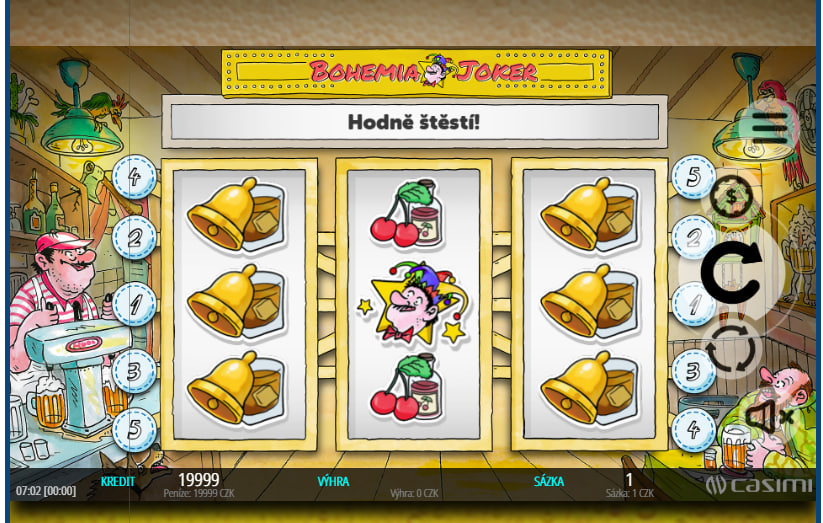 Casimi Gaming's Bohemia Joker presents itself within the familiar framework of a classic slot machine, utilizing a 3-reel, 3-row grid configuration. This setup immediately signals a gameplay style often associated with more traditional slot experiences. However, nestled within this structure are specific bonus mechanics and a distinct visual identity centered around a well-known Czech cartoon character, Ruda Pivrnec, suggesting a departure from generic fruit machine themes. The game operates on 5 fixed paylines, a common element in 3-reel designs that concentrates winning potential across fewer lines compared to multi-line video slots.
