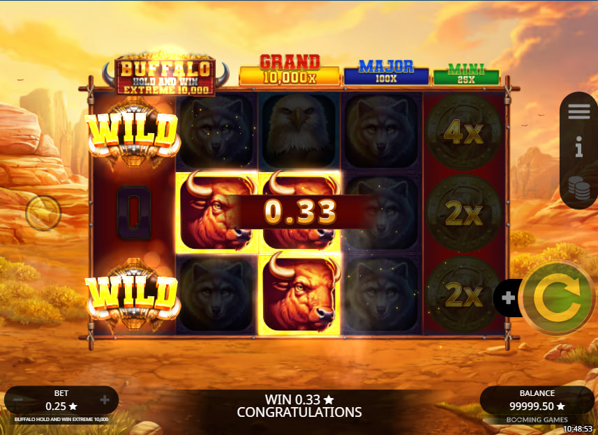 Another layer of strategy is introduced by the “Buy Bonus” feature, allowing players to directly purchase the Buffalo Bonus for 100x their bet. This provides a guaranteed entry into the Wheel of Fortune, enabling players to bypass the reliance on random triggers in the base game. This option is especially appealing to those aiming for a direct route to the Hold and Win Extreme feature. However, the cost needs careful consideration.