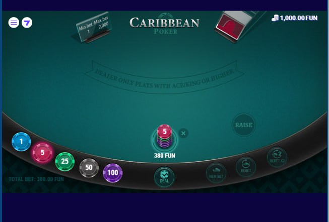 The visual presentation of Caribbean Poker is a study in minimalism and functionality. There are no elaborate thematic elements, animated characters, or distracting visual effects. The screen is dominated by a clean, deep green felt table, evocative of a professional poker room. The cards themselves are rendered in a classic, legible style, and the betting chips are clearly marked with their values. This spartan aesthetic is a deliberate choice, ensuring that the player's attention remains fixed on the cards and the strategic decision at hand. The design communicates respect for the game itself, presenting it without unnecessary adornment.