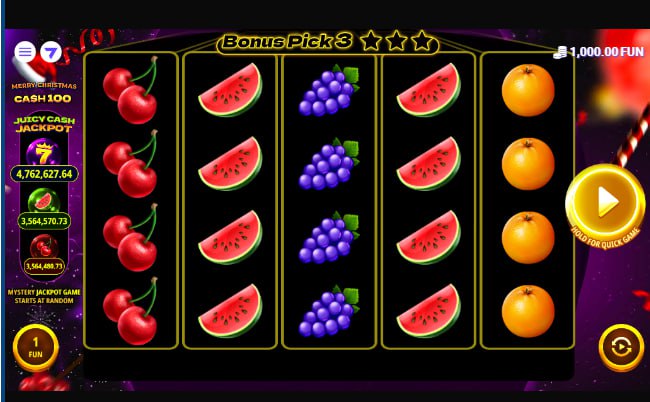 The “Hold for Quick Game” feature allows players who prefer rapid, uninterrupted spinning to bypass potential pauses, including the post-win decision. This caters to a desire for efficiency, common among high-volume players, though it means sacrificing the opportunity to engage with the unique x4 multiplier gamble feature. For players evaluating this slot for real-money play after trying free slots online, understanding the frequency and potential impact of both the Pick 3 bonus and, more importantly, the Juicy Cash Jackpot triggers and the Cash In gamble is crucial. The maximum potential multiplier of x4 on winnings offers a clear upside for taking the risk, while the potential loss of the entire win is the defined downside.