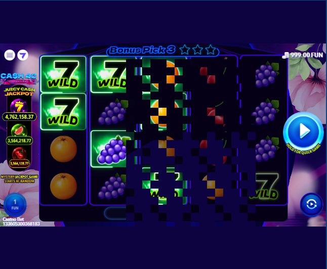 Within this pick-and-click bonus, there is another layer of gameplay: the pursuit of the Juicy Cash Jackpot. Hidden behind some of the nine stars are special “Golden Coin” symbols. Uncovering these coins is the sole method for triggering the game's progressive jackpot. According to the game's information, the jackpot is seeded and grows with a contribution of 0.2045% from each bet. This “game-within-a-game” structure creates a dual objective during the Pick 9 bonus: players are simultaneously collecting immediate prizes while searching for the specific symbols required to unlock the jackpot feature. The design ensures that even if the jackpot is not won, the bonus round still delivers a guaranteed series of wins from the revealed prizes.