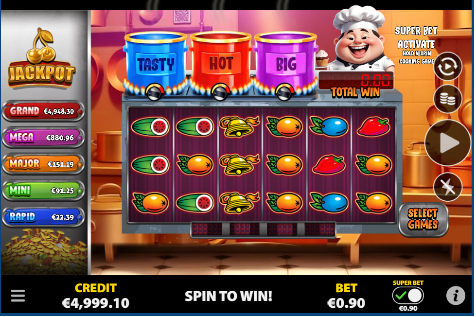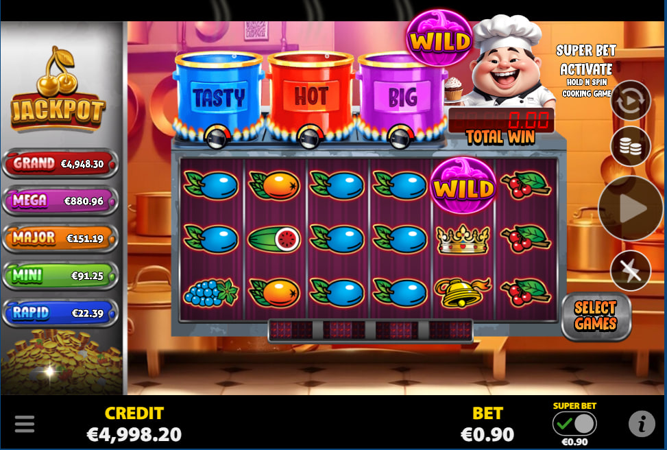 Beyond the ‘Chef Bonus Hold N Spin', “Chef Super Bet” also features a Progressive Jackpot system. This system comprises five distinct jackpot levels: RAPID, MINI, MAJOR, MEGA, and GRAND, each displaying its current prize value prominently on the left side of the game interface. A small percentage (1%) of each player's bet contributes to the progressive jackpot pool. The jackpot can be awarded randomly on any paid spin during the base game.