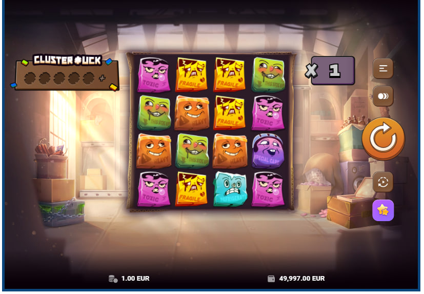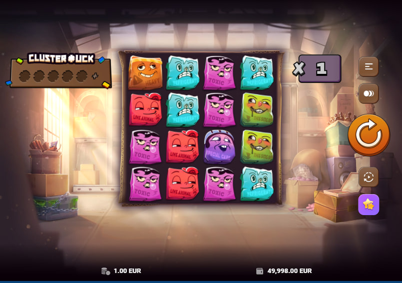 At its heart, Cluster*uck utilizes a Cluster Pays system, where combinations are formed by five or more identical package symbols connecting either vertically or horizontally. This eschews traditional paylines, focusing instead on the massing of these characterful containers. The initial grid configuration is a 4×4 space, but this is merely a starting point for the potential controlled demolition that follows a win.