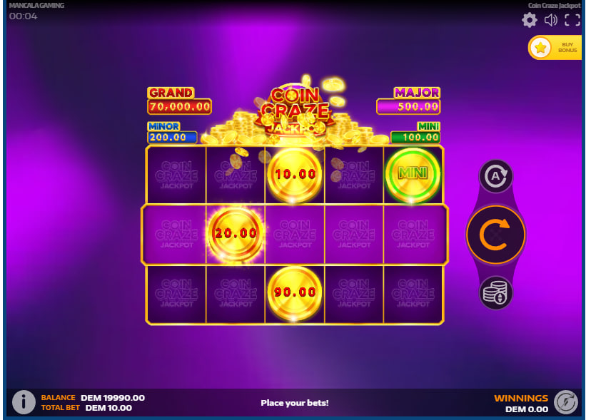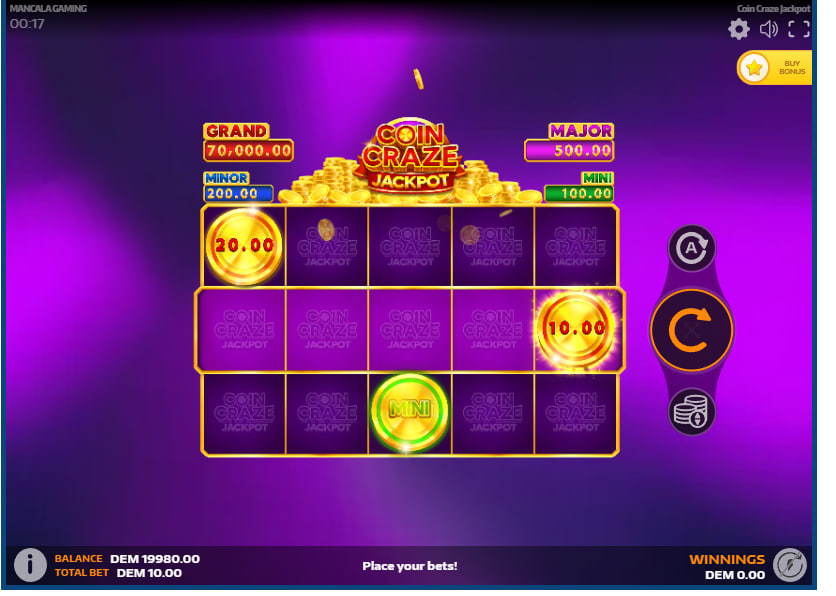 Coin Craze Jackpot by Mancala Gaming presents a gameplay paradigm centered entirely on its distinct bonus mechanics, eschewing traditional payline structures. The visual presentation adopts a straightforward, luminous aesthetic, focusing player attention on the gold coins and jackpot indicators that dominate the screen. Its atmosphere is less about thematic immersion and more about the anticipation of its unique collection and jackpot features. This is not a game that relies on narrative; its allure lies in the intricate workings of its reward systems.