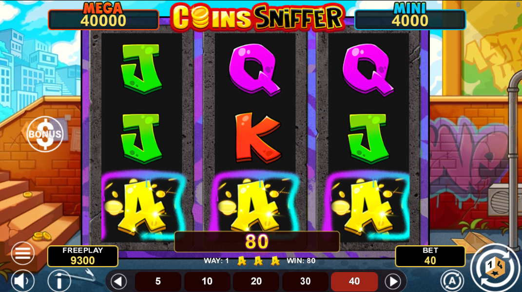 The game's visual identity draws heavily from contemporary street art culture, with vibrant graffiti decorating the reels. Rather than typical casino glamour, this slot embraces the raw energy of urban environments. The main character – a streetwise detective dog – adds a playful twist to the serious business of coin hunting. The game's symbols reflect its street setting, featuring items like lanterns that cut through dark alleys and drink cans that might catch a keen-nosed investigator's attention.
