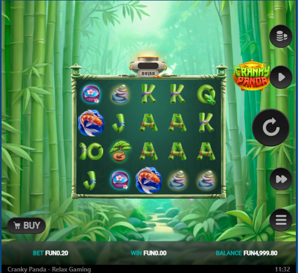 The game's aesthetic is undoubtedly one of its strongest suits. The backdrop of lush, towering bamboo stalks creates an immersive and calming atmosphere, a stark contrast to the often frantic pace of online slots. The symbol design is equally impressive, featuring the stoic panda, a vibrant koi fish, a delicate cherry blossom, stacked stones, and a meticulously rendered bonsai tree. These higher-paying symbols are complemented by standard card royals (J, Q, K, A), rendered in a style that fits seamlessly with the overall theme. The visual presentation is clean, sharp, and highly polished, demonstrating Relax Gaming's commitment to creating an enjoyable user experience.