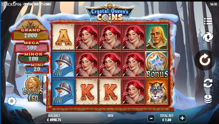 Crystal Queen's Coins is essentially a thematic reimagining of Quickspin's Catrina's Coins. The core mechanics remain largely consistent, but the visual presentation shifts from the vibrant, sun-drenched aesthetic of Catrina's Coins to a frosty, winter wonderland. The main protagonist is the titular Crystal Queen, a regal figure who embodies the icy beauty of the game's setting. Supporting characters include stylized snowmen, a Nordic-inspired man, a red-haired woman, and a cat, each visually representing the winter theme.