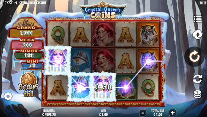 Frozen Fortune Bonus: This hold-and-win round begins with three free spins. Landing additional Crystal Coins, Snowflakes, or Crystal Balls resets the spin counter to three, offering extended opportunities for substantial wins. Mastering the strategy within this round involves judging the risk of continuing to spin versus collecting the existing symbols. This calculation takes into account both the immediate value of the symbols present and the potential for multipliers to increase their value with further spins.