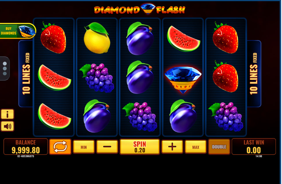 The fundamental structure of Diamond Flash is built upon a 5-reel, 3-row grid configuration. Gameplay operates across 10 fixed paylines, meaning players cannot adjust the number of active lines per spin. Winning combinations are registered when identical symbols align on a payline from left to right, typically requiring three or more matching symbols starting from the leftmost reel.