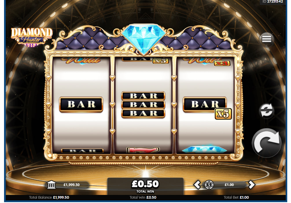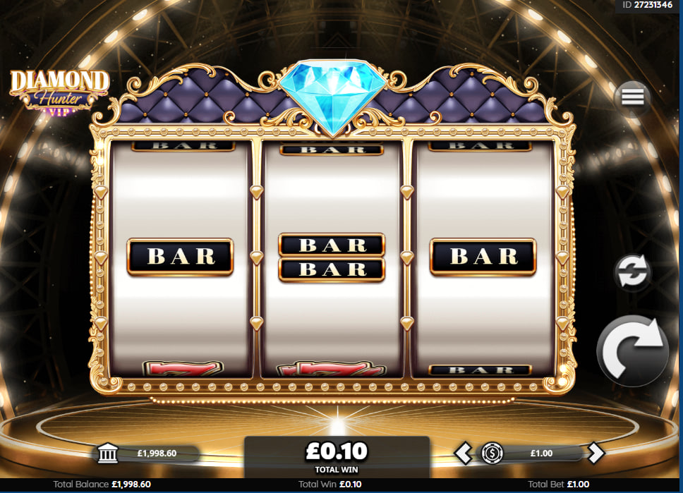 Diamond Hunter VIP adopts a visual style that is intentionally rooted in classic slot machine design, yet it subtly incorporates elements of modern aesthetic refinement. The color palette is rich and warm, dominated by gold and deep purples which immediately evoke a sense of luxury and ‘VIP’ exclusivity hinted at in the title. The symbols themselves – Bars, Sevens, and Diamonds – are rendered in a polished, almost gem-like fashion, with crisp lines and reflective surfaces that catch the light. While not venturing into elaborate 3D animations or cinematic sequences, the slot utilizes subtle animations to highlight winning lines and feature triggers. When Diamond Wilds land or nudge, they emit a sparkling effect; multiplier symbols gleam with an added luminescence when part of a winning combination. These visual cues are understated but effective in enhancing the sense of excitement and reward.