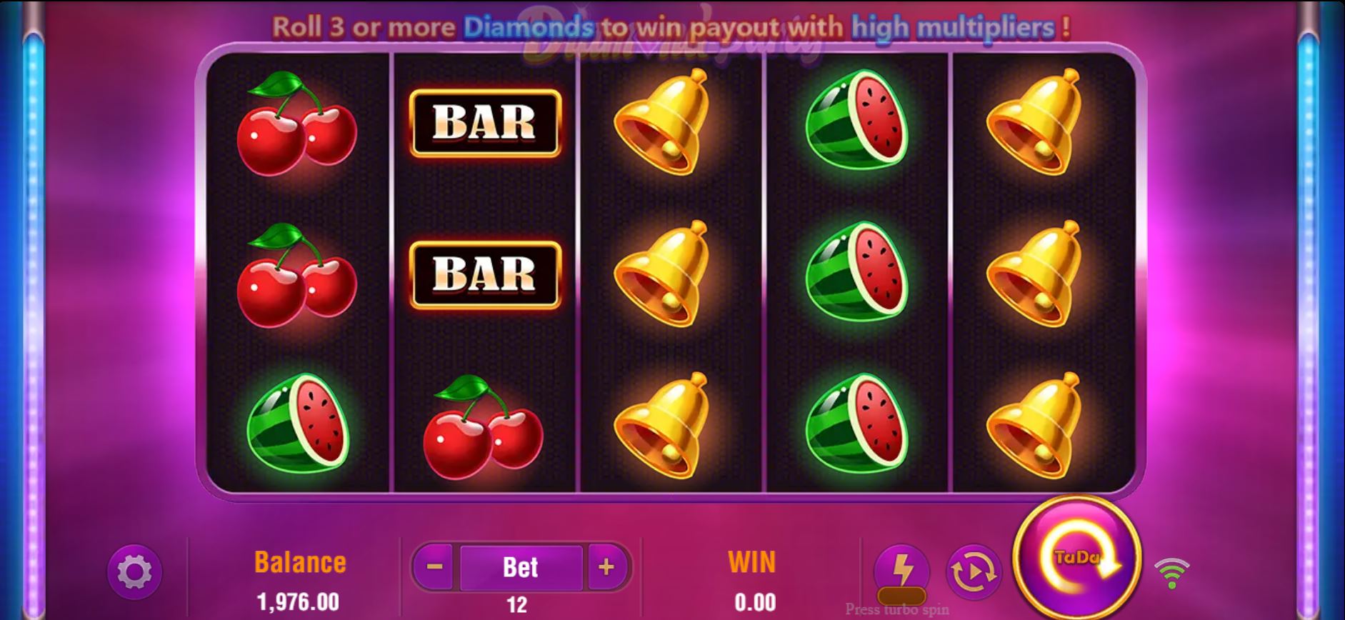 Ultimately, Diamond Party is a clever and engaging title. TaDa Gaming has successfully created a slot that honors its classic roots while delivering a genuinely modern and dynamic gameplay experience. It’s not about reinventing the wheel, but about making the wheel spin faster and with more rewarding friction. For players tired of the all-or-nothing nature of high-volatility slots, this game offers a refreshing, action-packed alternative. I'd recommend giving the demo a try.
