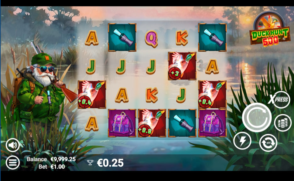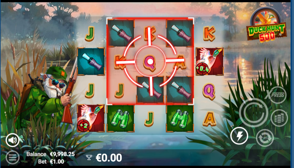 Duck Hunt 500 by AvatarUX establishes a calm wetland atmosphere built around a hunting theme. The game uses a standard 5-reel, 3-row layout with 20 fixed paylines. A primary gameplay mechanic involves the Hunter’s Shot, a random event collecting cash values from target symbols positioned on the grid. This collection system operates alongside traditional payline evaluations. Landing three or more Bonus symbols initiates the Free Spins round. During Free Spins, the Hunter’s Shot expands, potentially covering the entire grid for increased collection opportunities. Multiplier Ducks within the bonus apply boosts to collected cash amounts. The theoretical base game return for this slot is 96.03%.