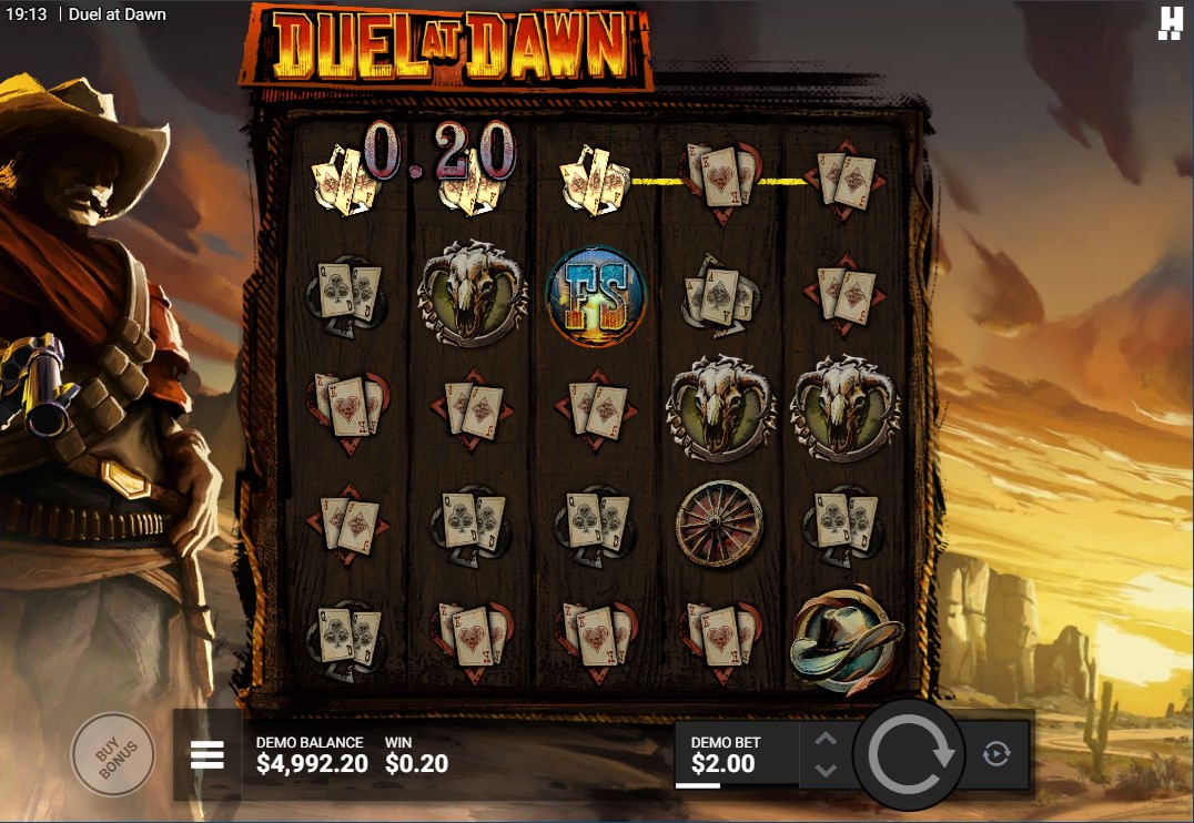 At its heart, Duel at Dawn operates on a 5×5 grid with 19 paylines, where winning combinations must start from the leftmost reel. The game's versatile betting range accommodates both casual gunslingers (0.10 minimum) and high-rolling desperados (100.00 maximum). With a hit frequency of 29% and high volatility (4/5), every spin carries the weight of a high-noon showdown.