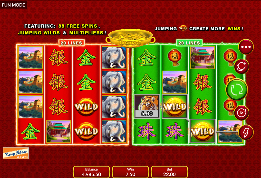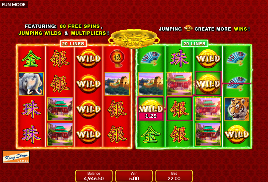 The visual presentation balances traditional Chinese artistic elements with modern slot design principles. The dual-grid layout remains clear and readable despite its complexity. The animation system, particularly during wild jumps and transformations, maintains smooth performance without sacrificing visual impact.