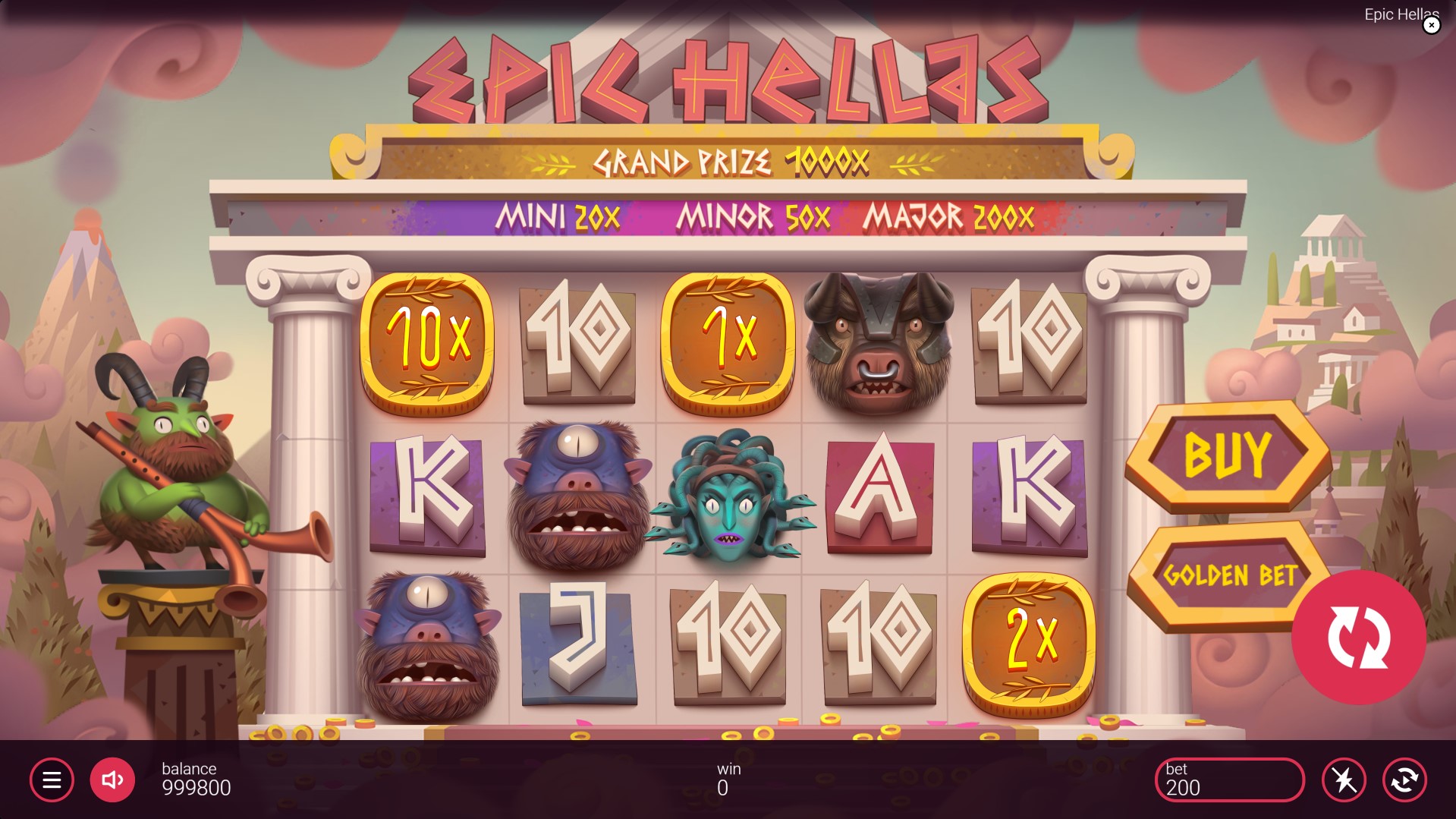 For players who prefer to skip the base game and go directly to the main attractions, “Epic Hellas” offers a Buy Feature. For 55x the bet, you can instantly trigger the Bonus Game. Alternatively, for 70x the bet, you can buy your way into the Free Spins feature. While this can be a costly option, it provides a direct route to the most exciting and potentially rewarding parts of the game. The Buy Feature lets you jump straight into the Bonus Game or the Free Spins. For 55x your bet, you can trigger the Bonus Game, and for 70x, you can enter the Free Spins round. This feature is a double-edged sword โ it can provide instant gratification but comes at a significant cost. It is perfect for those who love high-stakes action and are willing to take the risk. The option to choose between Bonus Game and Free Spins allows for some tactical decision-making. For those willing to take the risk, the Buy Feature can offer immediate access to the most exciting parts of the game, although it does come with a hefty price tag.