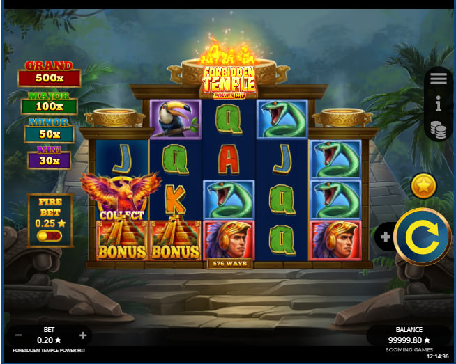 Booming Games’ “Forbidden Temple Power Hit” offers an encounter with an Aztec-inspired jungle setting, presenting a stone temple backdrop. The game commences with a 3x4x4x4x3 reel structure, providing 576 initial ways for symbol combinations. Its core gameplay revolves around the Power Hit Collection system, where Coin symbols display values and Phoenix Collect symbols on reels 1 and 5 gather these amounts. A significant feature is the Free Spins round, which expands the grid to 3x6x6x6x3, increasing winning ways to 1944. Additional mechanics include Reel Frenzy multipliers up to x5 and Second Chance Respins. The game operates with a Return to Player (RTP) of 95.8%. Players can anticipate varied payouts, with a maximum win potential of 10,000 times the base stake. This slot combines familiar thematic elements with several distinct interactive features.