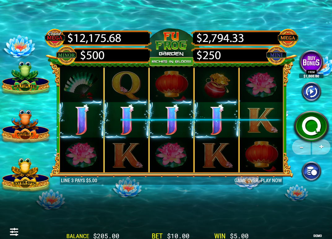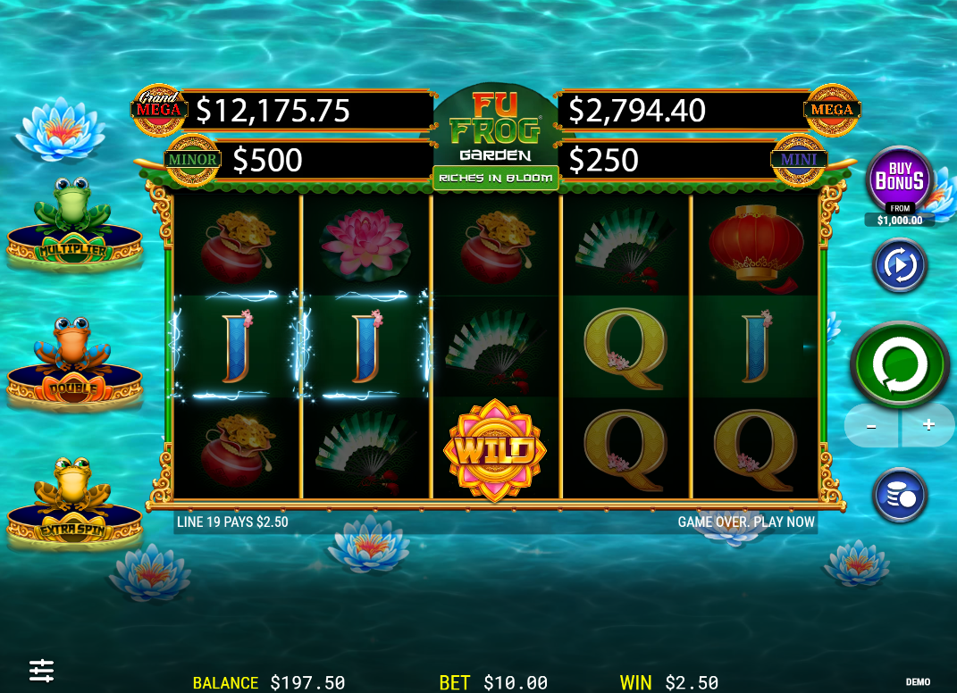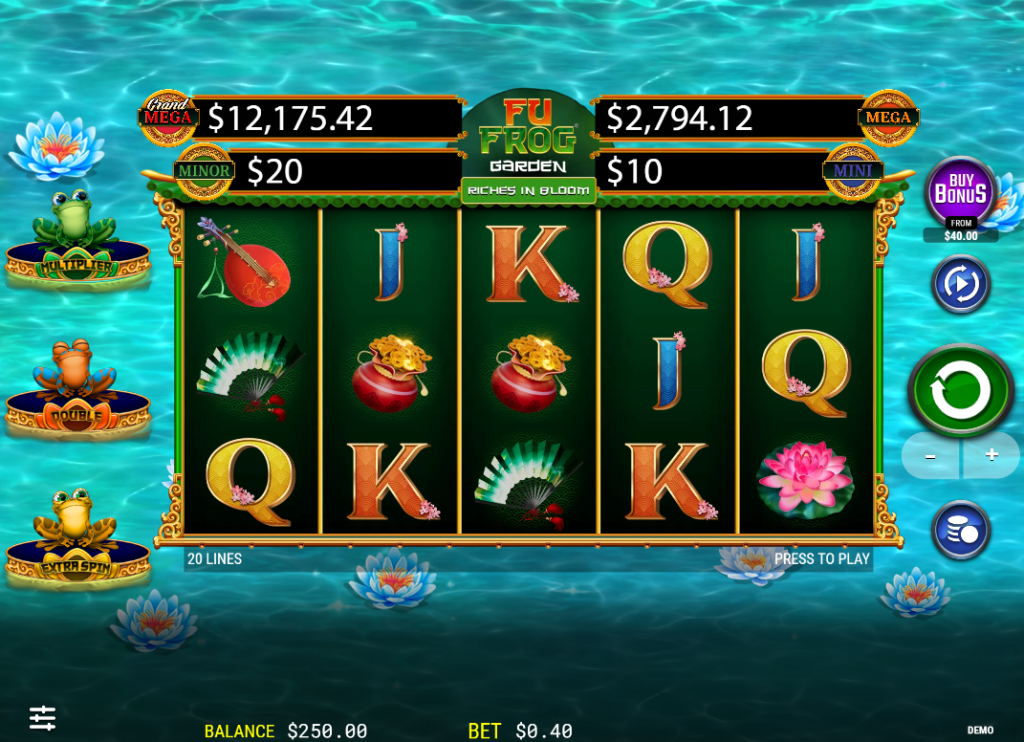 Fu Frog Garden, created by ZITRO, combines Asian cultural elements with innovative slot mechanics in a 5×3 grid format. The game features 20 betways and implements a unique three-tier bonus system that includes multipliers, respins, and symbol collections. With an RTP of 92.22% and high volatility, this slot appeals to players seeking substantial wins through its progressive jackpot system. The garden-themed environment showcases traditional symbols like golden pots, red lanterns, and musical instruments, while the wild symbols strategically appear on reels 2, 3, and 4. Players can engage with betting options ranging from $0.20 to $40, making it accessible across different bankroll levels. The bonus features can combine together, creating dynamic gameplay experiences with potential for significant rewards. Multiple progressive jackpot tiers, including the Grand Mega and Mega levels, add another layer of winning possibilities.