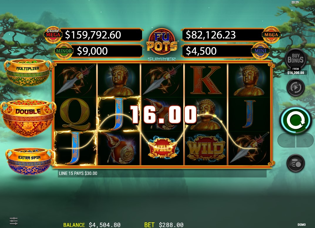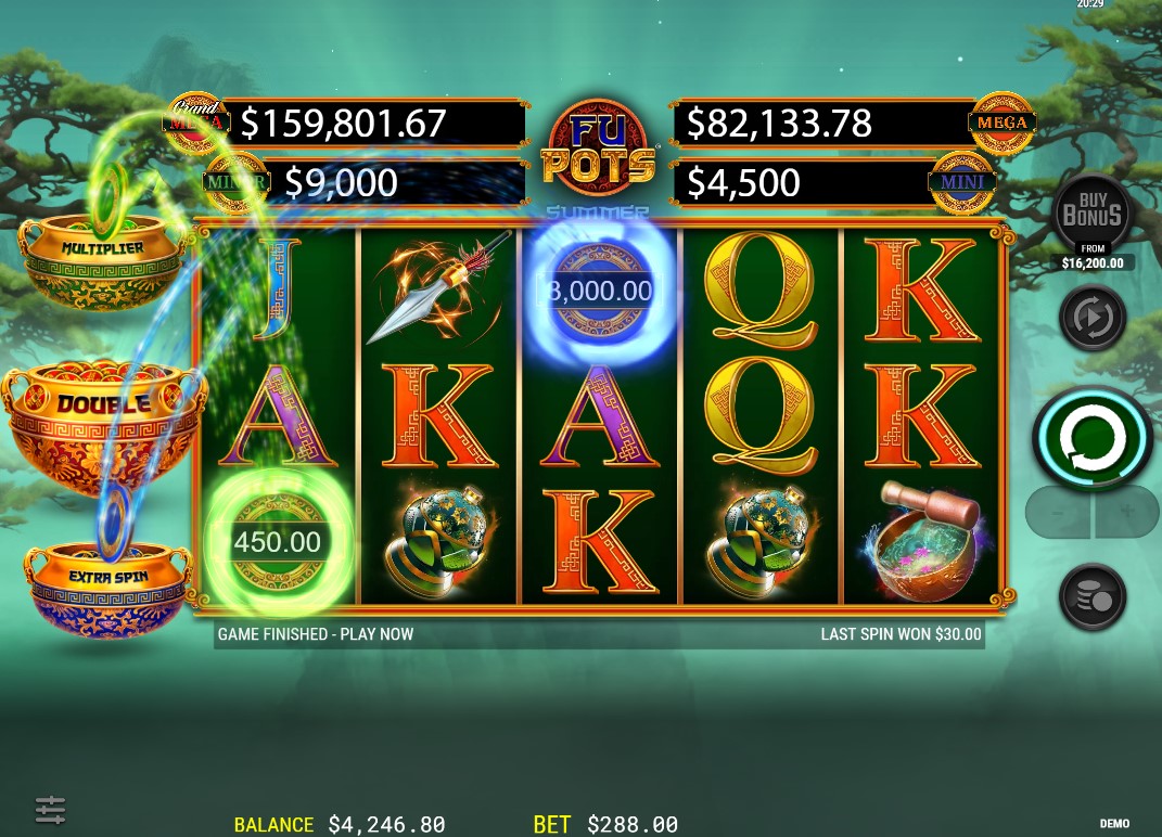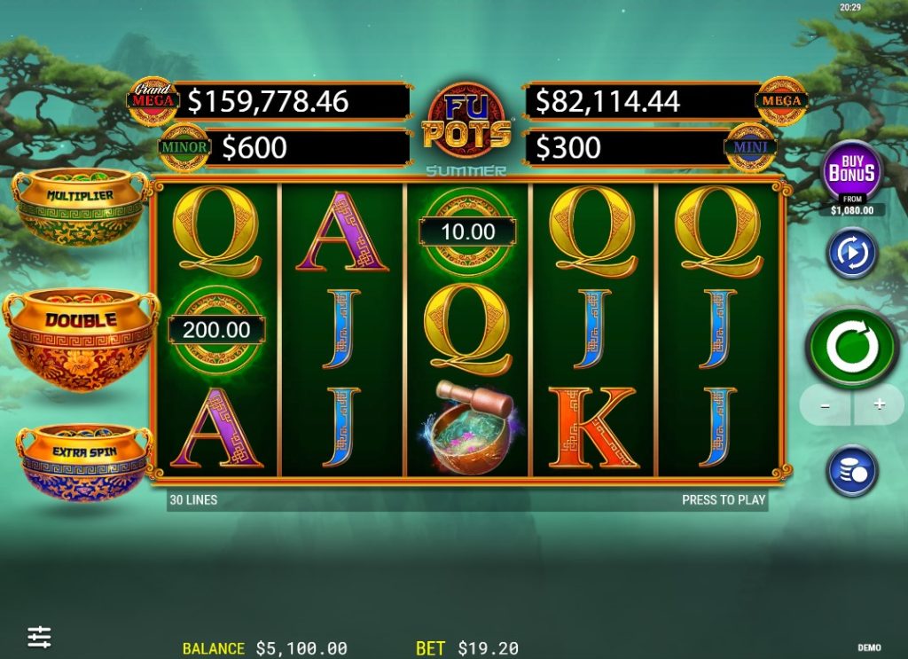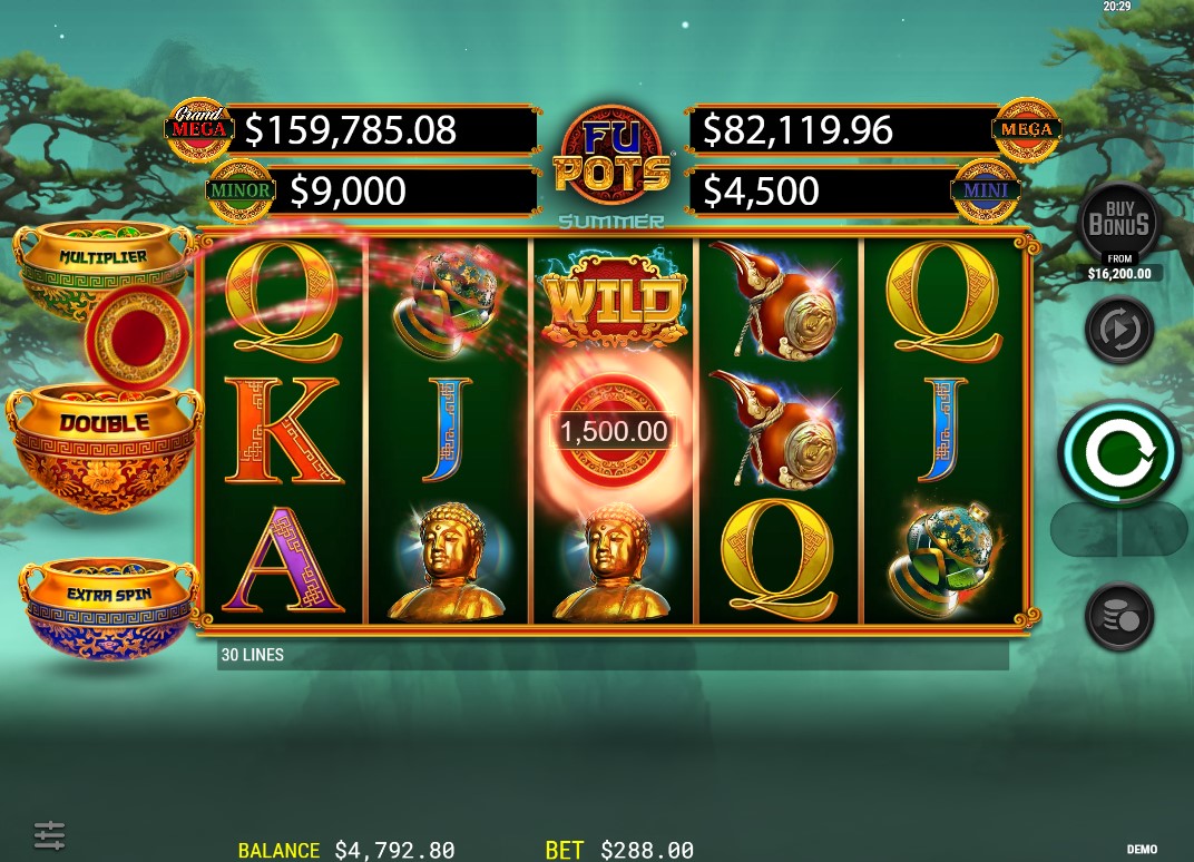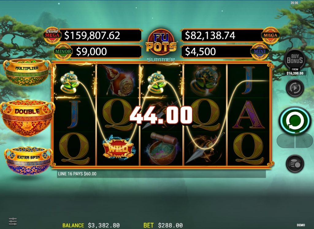 Fu Pots Summer introduces a distinctive three-tier bonus system comprising Multiplier, Double, and Extra Spin features. What makes this implementation special is the ability to trigger these bonuses both individually and in combination, creating layers of strategic depth rarely seen in similar titles.