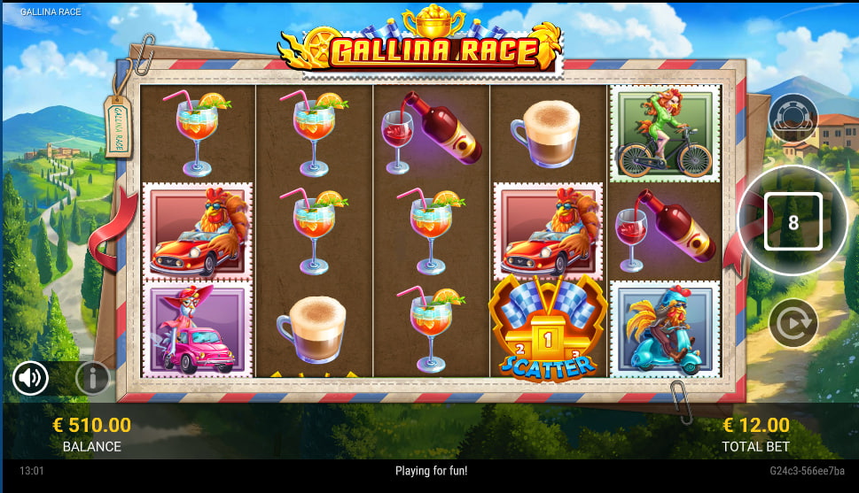 The thematic execution in “Gallina Race” is undeniably one of its most distinctive aspects. The slot immerses players in a cartoon-styled Italian countryside, complete with rolling hills, cypress trees, and charming villas in the background. This scenic vista provides a relaxed and visually appealing setting for the high-energy chicken races taking place on the reels.