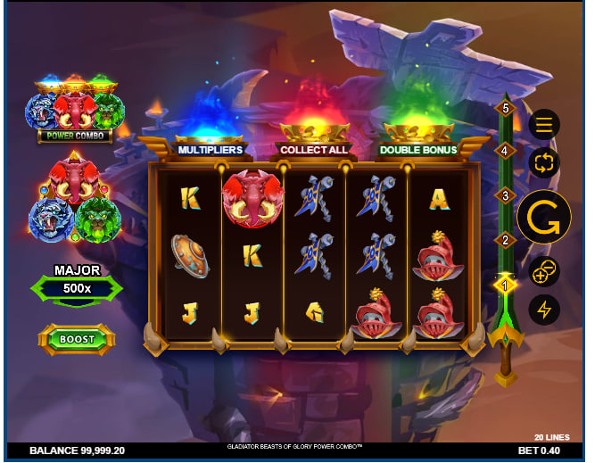 For players seeking to influence the feature potential, Gladiator Beasts of Glory Power Combo offers several Boost options, activated at an increased total bet: