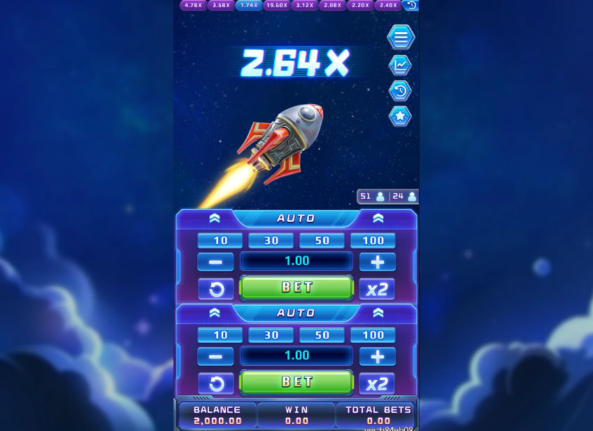 The simplicity of the core mechanic is complemented by several strategic layers. First, the game offers both manual and automatic betting options. Manual betting demands careful observation and judgment, rewarding those who can accurately predict the rocket's flight path. Auto betting allows players to define specific parameters (such as rounds, cashout multipliers, and even partial cashouts) to automate the process, balancing potential risk and reward. The decision of whether to use manual or auto mode significantly alters the gameplay experience and appeals to different player preferences.