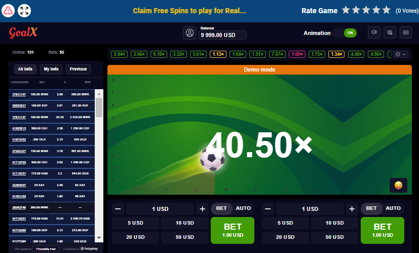 GoalX stands apart from traditional crash games by incorporating a soccer theme and offering an innovative dual betting system. The game's distinguishing feature is its ability to handle two simultaneous bets per round, giving players enhanced control over their gaming strategy and potential winnings.