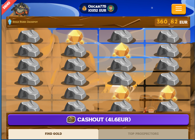 The Diamond and the Gold Rush Jackpot: The light blue Diamond symbol is the game's chase element, directly linked to the Gold Rush Jackpot displayed at the top of the game screen. Uncovering a Diamond instantly awards the player the current value of this jackpot. This jackpot appears to be a progressive or pooled prize, as its value fluctuates. The discovery of the Diamond is a round-ending event that delivers the game's most significant prize. The possibility of finding a Diamond provides a compelling reason to continue picking, even when the accumulated winnings are substantial, as it represents a reward tier far beyond what standard gold nugget collection can offer. If the precise function of these special items or their interaction with the jackpot feels complex, you can launch the Gold Mines demo and access the official game information by clicking the help icon, usually marked with an (i).