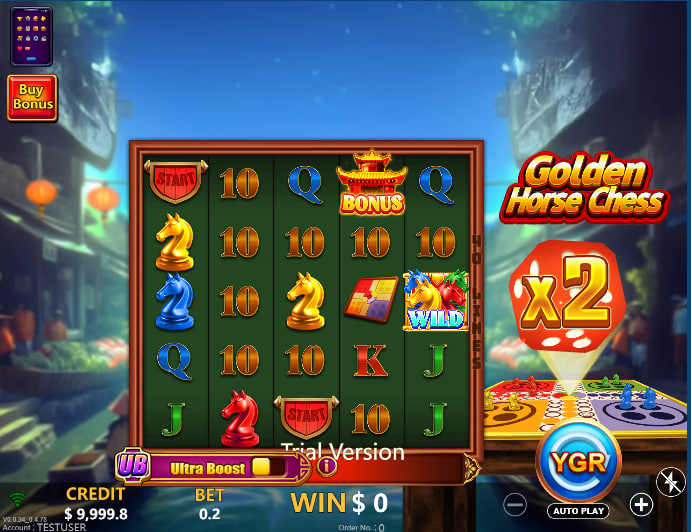 YGR's Golden Horse Chess presents a unique fusion of classic board game strategy and the thrill of online slots, offering a visually striking and mechanically engaging experience for seasoned players. Set against a backdrop evoking a tranquil Asian village scene, the game’s aesthetic leans into the refined elegance of Chinese chess, or Xiangqi, while introducing a robust slot machine framework. This review aims to dissect the intricate layers of Golden Horse Chess, illuminating its distinctive features and assessing its appeal to those who appreciate both strategic depth and rewarding gameplay.