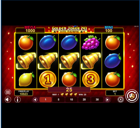 The Hold & Win feature in Golden Joker 243 is further augmented by two fixed jackpots, the Mini and the Mega, which add another layer of potential beyond the standard coin collection.