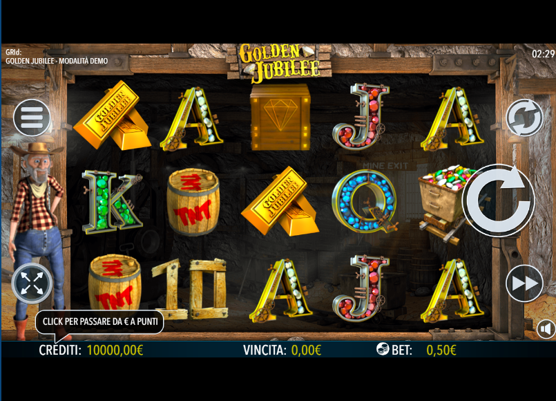 Golden Jubilee by Bakoo is a video slot centered on the classic theme of gold prospecting. The game operates within a visually functional mine shaft setting, utilizing a dark, earthy palette to emphasize symbol clarity. It employs a standard 5×3 reel layout with 10 fixed paylines, ensuring a familiar base for experienced players. The central gameplay distinction lies in its use of two separate Scatter symbols, a design choice that splits the feature triggers into distinct paths. One Scatter, the Dynamite symbol, activates a straightforward pick-and-win bonus round for instant credit prizes. The other, a TNT Barrel, initiates a Free Spins mode where the feature can be re-triggered for extended play. The game’s theoretical Return to Player (RTP) is documented at 95.74%. Golden Jubilee ultimately offers a mechanically-focused experience, prioritizing the anticipation of its dual bonus features over narrative depth.