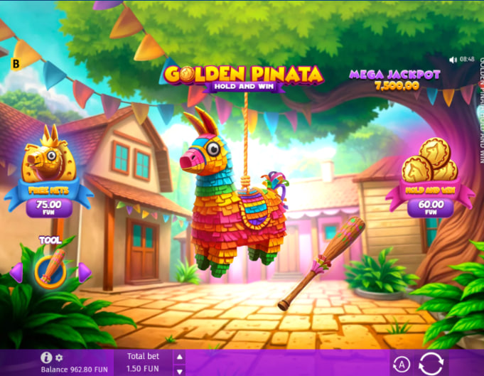 The fundamental mechanic of Golden Pinata is remarkably straightforward yet distinct. Players initiate each round by “hitting” the central piñata, an action performed by clicking a button or, if enabled, using the spacebar. Before commencing, players are offered a Tool Choice, presenting three different implements (e.g., a bat, a stick). While this selection adds a minor cosmetic personalization, the game's documentation does not suggest any impact on outcomes; the chosen tool remains consistent through subsequent main game hits and carries over into Free Hits rounds. The core loop is thus: select bet, hit piñata, observe outcome.