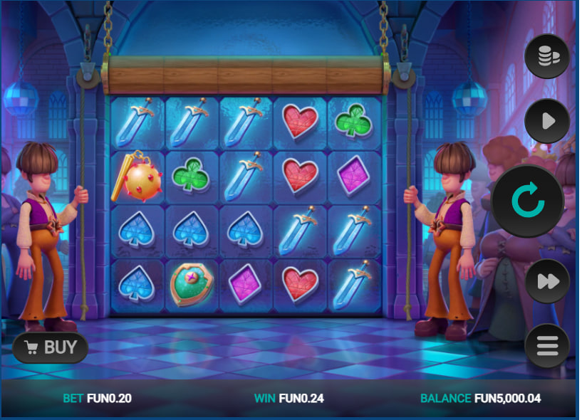 The overall atmosphere cultivated is one of lighthearted anachronism. It does not take itself too seriously, aiming instead for an amusing and somewhat quirky player experience. The sound design complements this, likely incorporating disco rhythms with medieval flourishes, though the core focus of this analysis is on the mechanics and visual cues provided. The graphical fidelity is sharp, with symbols and characters rendered clearly, ensuring that the gameโs unique aesthetic is effectively communicated. This careful construction of theme and atmosphere sets the stage for the equally distinctive gameplay elements.