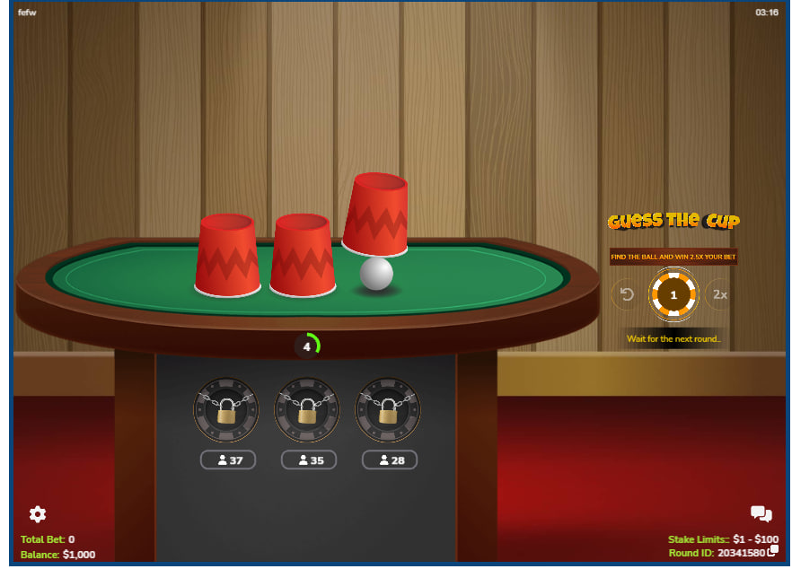 The visual presentation of Guess The Cup is functional and clean. It eschews the ornate graphics and animations that are the hallmark of many modern titles. The setting is a simple, polished wooden table with a classic green felt surface, evoking the ambiance of a private game room rather than a bustling casino floor. The user interface is integrated directly into the table's front panel, with clear, distinct betting areas for “LEFT,” “CENTER,” and “RIGHT.” Betting chips are plainly marked, and the overall layout is intuitive, minimizing any learning curve related to the game's operation. This minimalist aesthetic directs all the player's focus onto the central action: the movement of the cups.