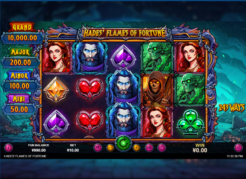 Realtime Gaming (RTG) presents a vision of the underworld in Hades' Flames of Fortune, a title that builds upon the popular Greek mythology theme. While the subject matter is familiar territory in the world of online slots, the execution here warrants closer inspection. The game operates on a 5×3 grid with aย 243 Waysย format, immediately signaling a departure from traditional payline structures. However, its primary appeal is not in the theme or the format, but in the intricate relationship between its two main bonus features: a refined Free Games round and, more significantly, a Hold & Spin bonus with a non-standard collection system. This review will dissect these mechanics, the game's artistic direction, and how its components interact to form a cohesive, if complex, gaming experience.